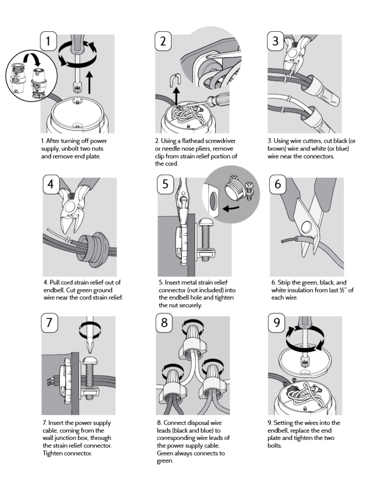 Refer to your food waste disposer manual for full installation instructions. This is only quick reference for hardwiring.